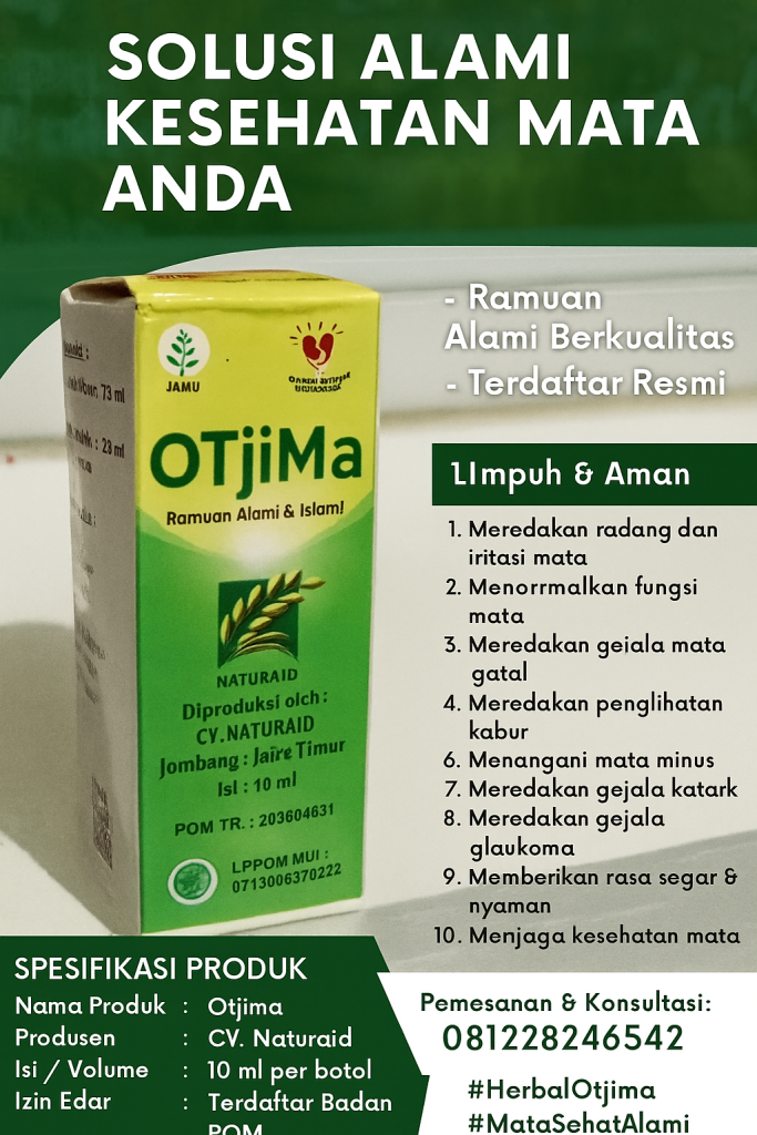 Apakah Anda sering mengalami mata merah, gatal, buram, atau lelah? Kini hadir OTJIMA, obat tetes mata herbal alami yang diformulasikan khusus untuk mengatasi berbagai gangguan mata tanpa efek samping. Dapatkan mata yang lebih sehat, segar, dan nyaman dengan ramuan terbaik dari alam!