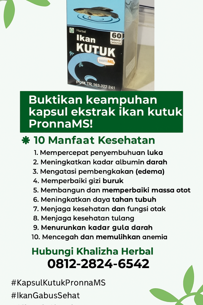 Tuntaskan masalah pemulihan penyakit dan penuhi kebutuhan albumin serta protein tertinggi tubuh Anda dengan Kapsul Ikan Kutuk PronnaMS! Produk asli dari CV Berkah Alam ini telah mengantongi Izin Edar BPOM TR 183 322 241, sehingga terjamin keamanan dan kualitasnya.