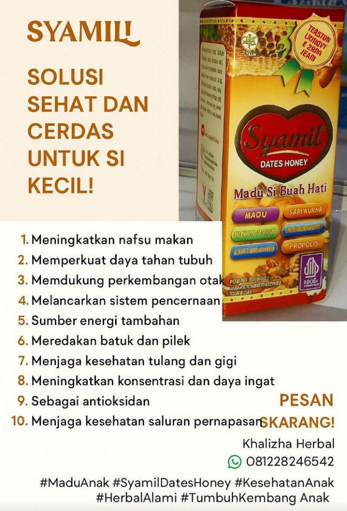 #MaduAnak #SyamilDatesHoney #KesehatanAnak #HerbalAlami #TumbuhKembangAnak