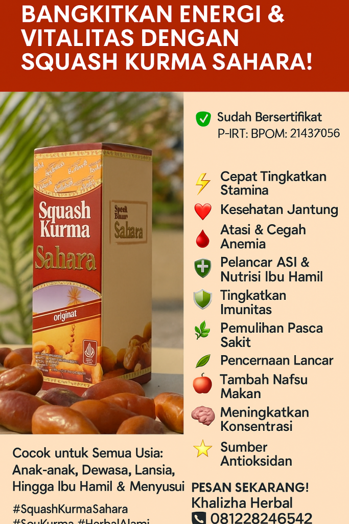 Dapatkan tubuh yang lebih bertenaga dan sehat bersama Squash Kurma Sahara!