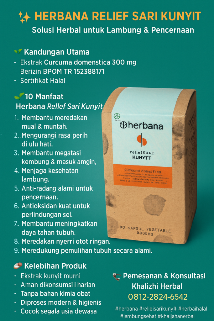 #herbana #reliefsarikunyit #herbalhalal #lambungsehat #khalizhaherbal
